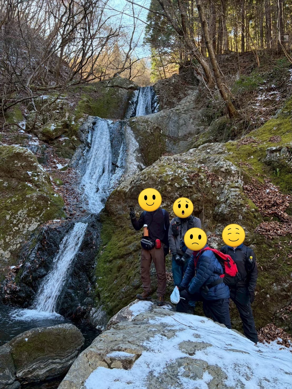 年明け早々で、鳩ノ巣城山というマイナーな山でかつ山頂まで急登なので、参加者がいるか心配だ ったが、4 名の方に参加頂き、無事行ってみたい山に行くことができました。また海沢三滝も思ってた 以上に壮観な滝散策で、満足できた山行でした。参加の皆様、楽しい山行でした、ありがとうございました。